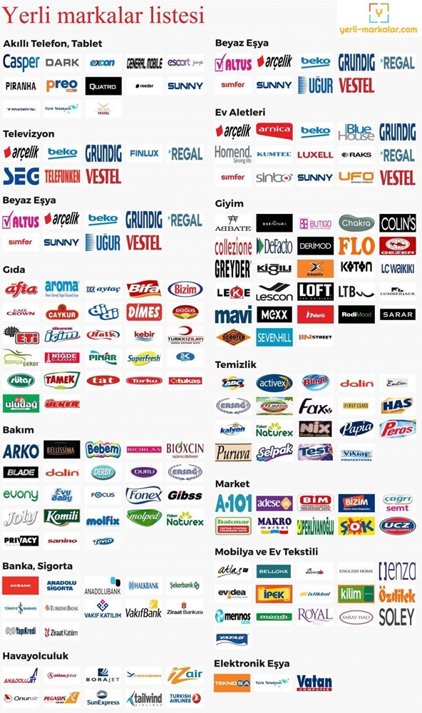 Arçelik, Beko, Vestel, Casper, Dark, Excon, General Mobile, Prınha, Preo, Quatro, Reeder, Sunny, Tridene, Arnica, Blue House, Homend, Kumtel, Luxell Raks, Sinbo, Ufo, Telefunken, Finlux, Poli, Goldmaster, Hanlight elektrik, Roni aydınlatma, Cepcase, Termikel, Electromed, Next-Nextstar.
