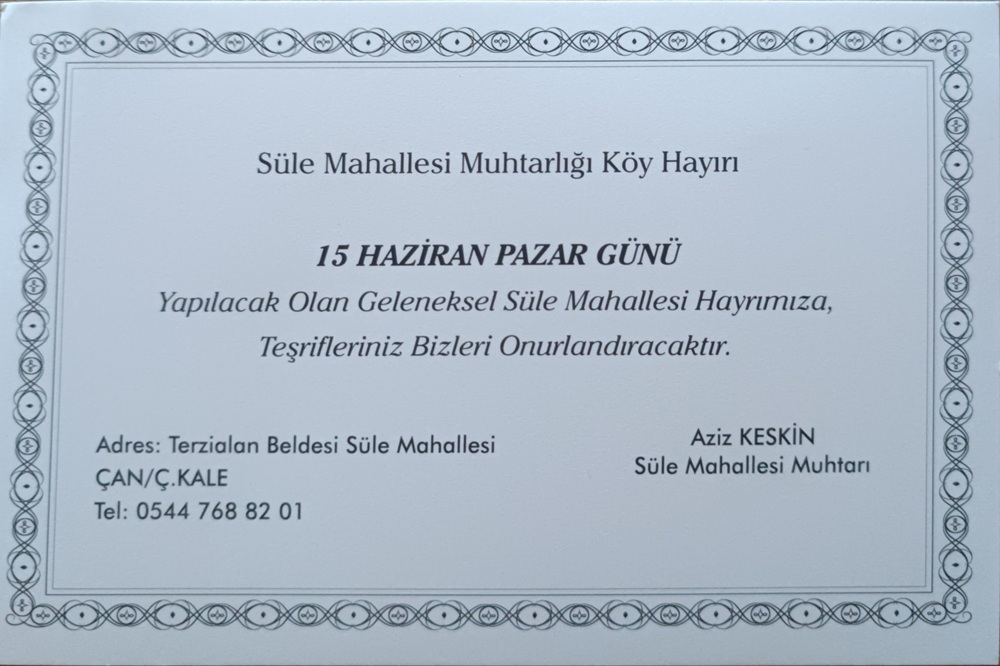 Süle Mahallesi hayrına davetlisiniz.