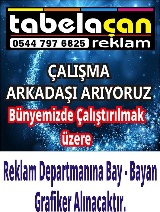 ÇALIŞMA ARKADAŞI ARANIYOR GENEL YAŞAM 01/06/202301/06/2023Gazete TerzialanLeave a Comment on ÇALIŞMA ARKADAŞI ARANIYOR 1.135 Defa Okundu TABELAÇAN bünyesinde , Reklam departmanında çalışacak Bay – Bayan GRAFİKER çalışma arkadaşı arıyoruz. MÜRACAAT: Tabelaçan Reklam – Sadi Beceren: 0 544 797 6825 [smartslider3 slider=”4″] BİRBİRİMİZE KENETLENELİM, SORUMLULUKLARIMIZI İDRAK EDELİM 4 – 6 YAŞ KUR’AN KURSU PROGRAMI GERÇEKLEŞTİ SELAM ŞOK İSTİFA MOTORCU DOSTLAR 9.KEZ GELİYORLAR
