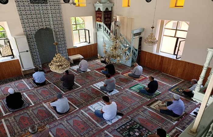 Bu hafta 05.06.2020 Cuma Namazı için Süle Mahallesi Camiindeyiz. Süle Mahallesi Camii imamı Halil ÇOLAK konu ile ilgili şu uyarılar da bulundu ; “Saf düzeninde bir buçuk metre mesafe çok önemli. Olabildiğince hutbeyi kısa tutacağız ve farz namazdan sonra sünnet namaz ve tesbihatın camide çekilmemesi gerekiyor. Farz namazı bittiği an, bayram sonudur tokalaşmak, bayramlaşmak yok. Farz namazından sonra bir an önce ayrılıp sünnet ve farz namazını evlerimizde eda ediyoruz. Camiyi terk ederken de , kapı da yığılmıyoruz , sosyal mesafeyi koruyarak , belirli aralıklarla çıkış yapıyoruz.” dedi.